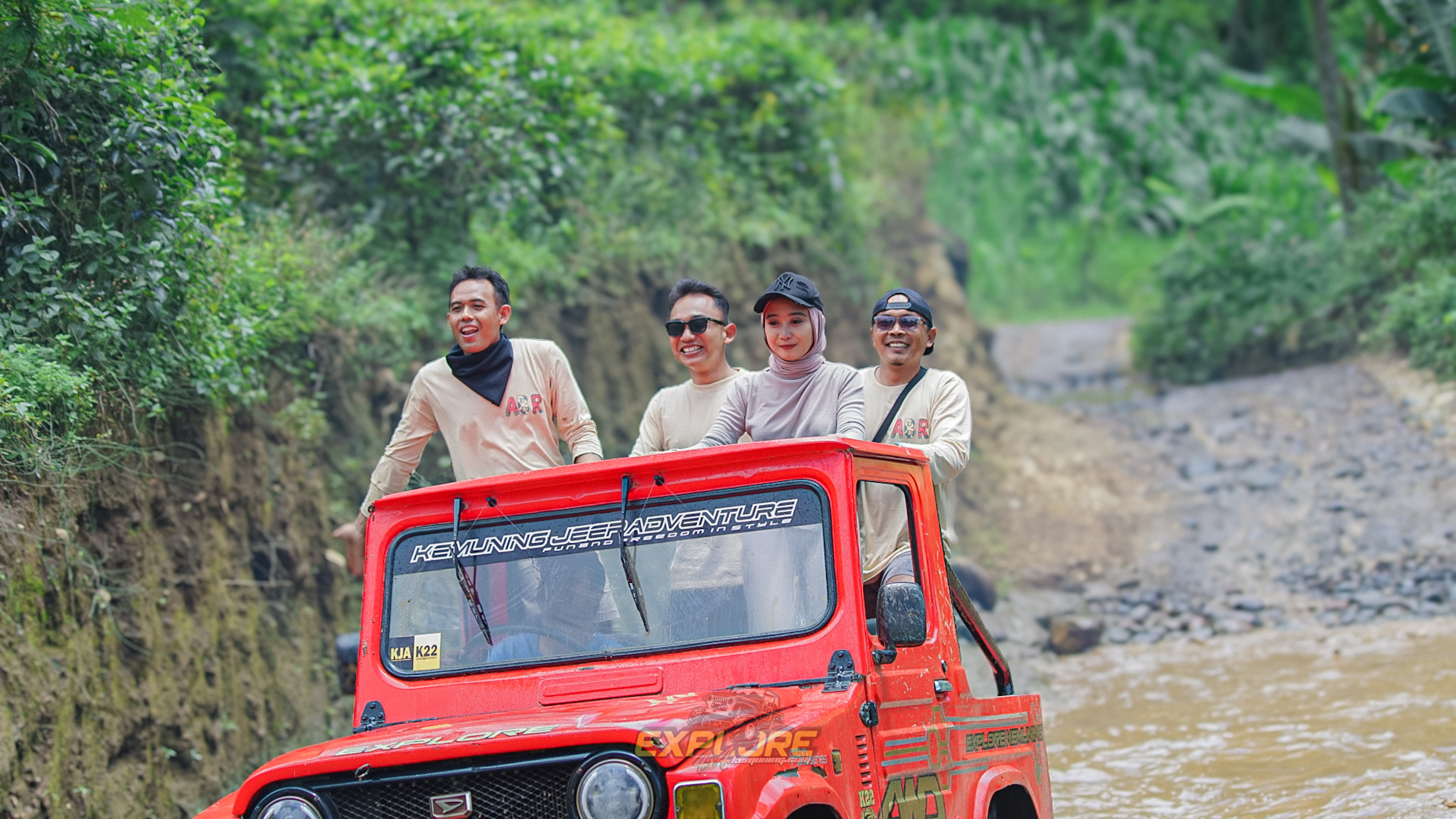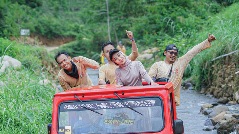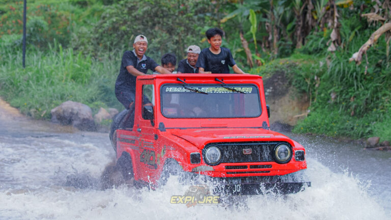 Rasakan pengalaman wisata dengan berkendara JEEP Adventure di area Wisata Kemuning